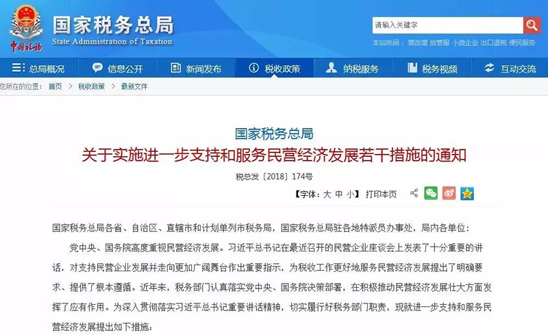 党中央、国务院高度重视民营经济发展。习近平总书记在最近召开的民营企业座谈会上发表了十分重要的讲话,对支持民营企业发展并走向更加广阔舞台作出重要指示,为税收工作更好地服务民营经济发展提出了明确要求、提供了根本遵循。近年来,税务部门认真落实党中央、国务院决策部署,在积极推动民营经济发展壮大方面发挥了应有作用。为深入贯彻落实习近平总书记重要讲话精神,切实履行好税务部门职责,现就进一步支持和服务民营经济发展提出如下措施: